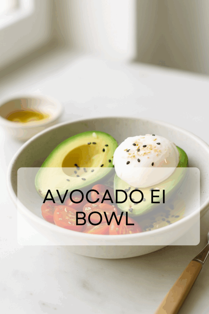 1 Avocado • 2 Eier • 6 Cherrytomaten • 1 TL Olivenöl • ½ TL Sesam