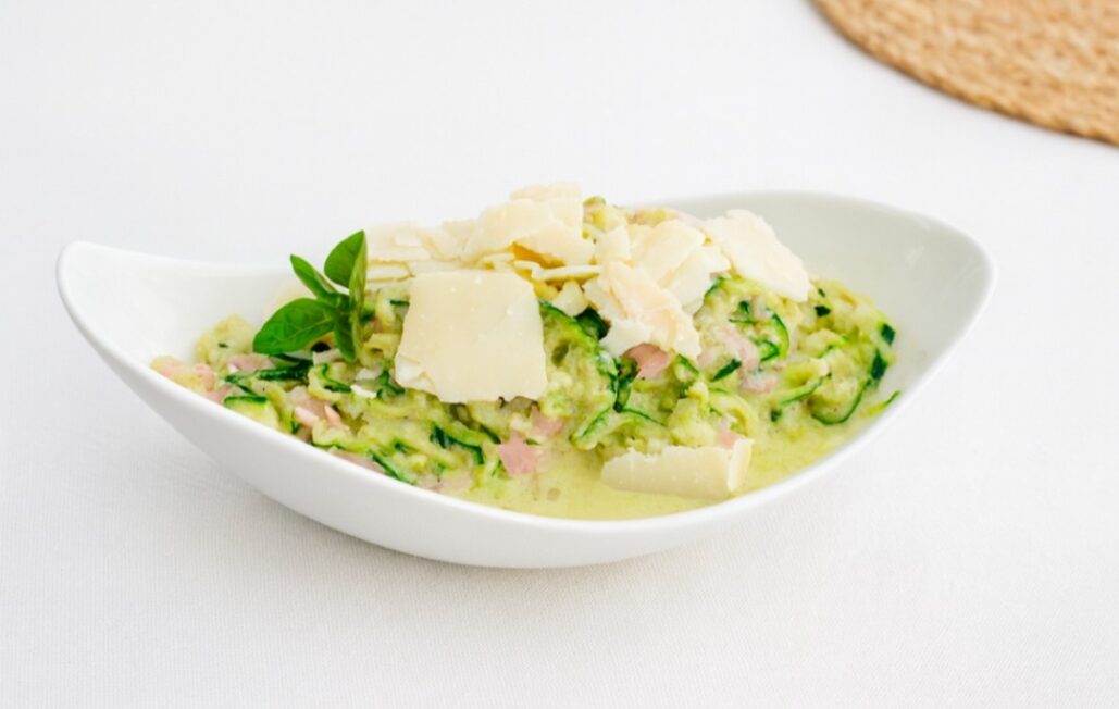 Keto-Zoodles in cremiger Parmesan-Soße (vegetarisch)
